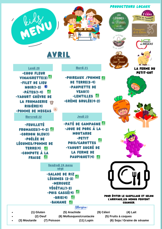 Menu du 20 au 24 avril 2026