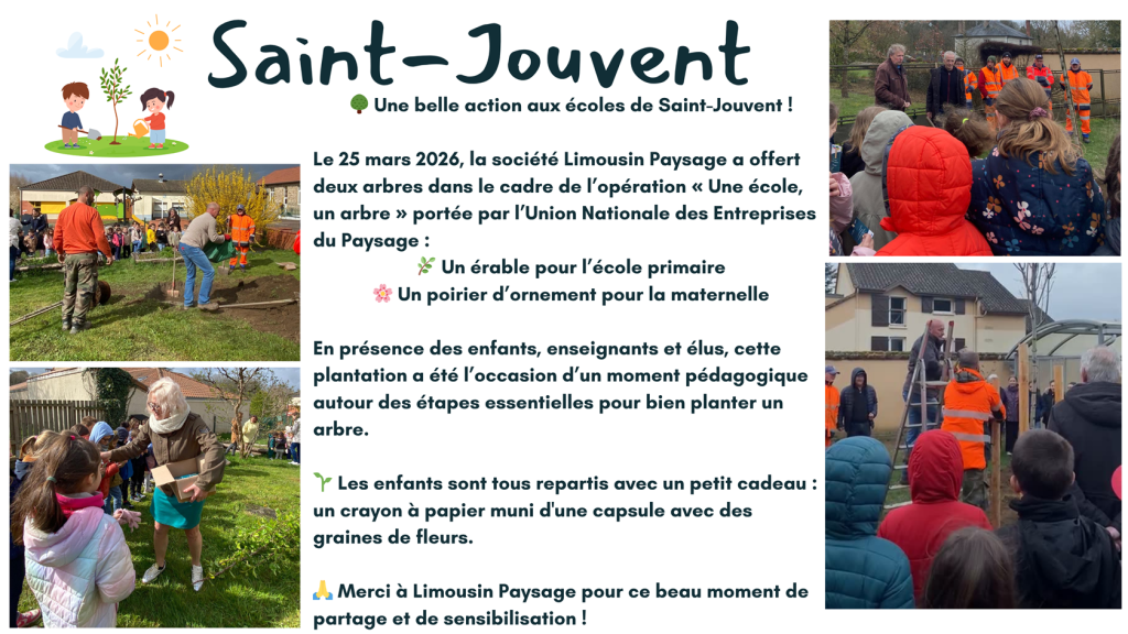 🌳 Une belle action aux écoles de Saint-Jouvent ! Le 25 mars 2026.